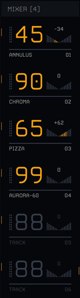 MIXER: 6-channel mixer with per-channel volume, pan, and metering — you need at least one.