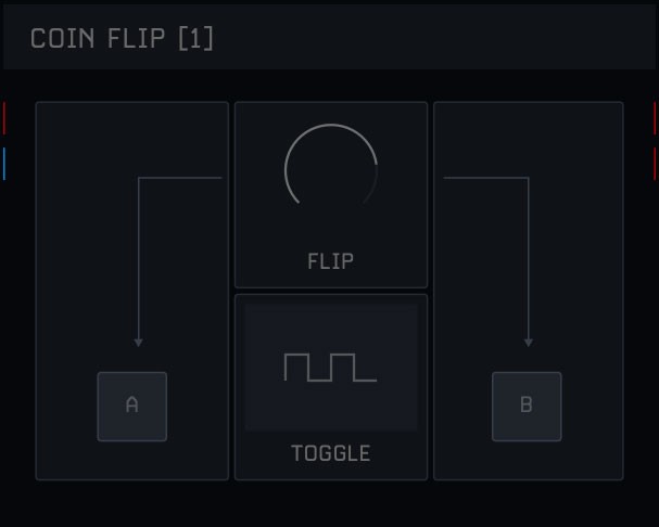 COIN FLIP: Bernoulli gate — probability routes triggers to output A or B.