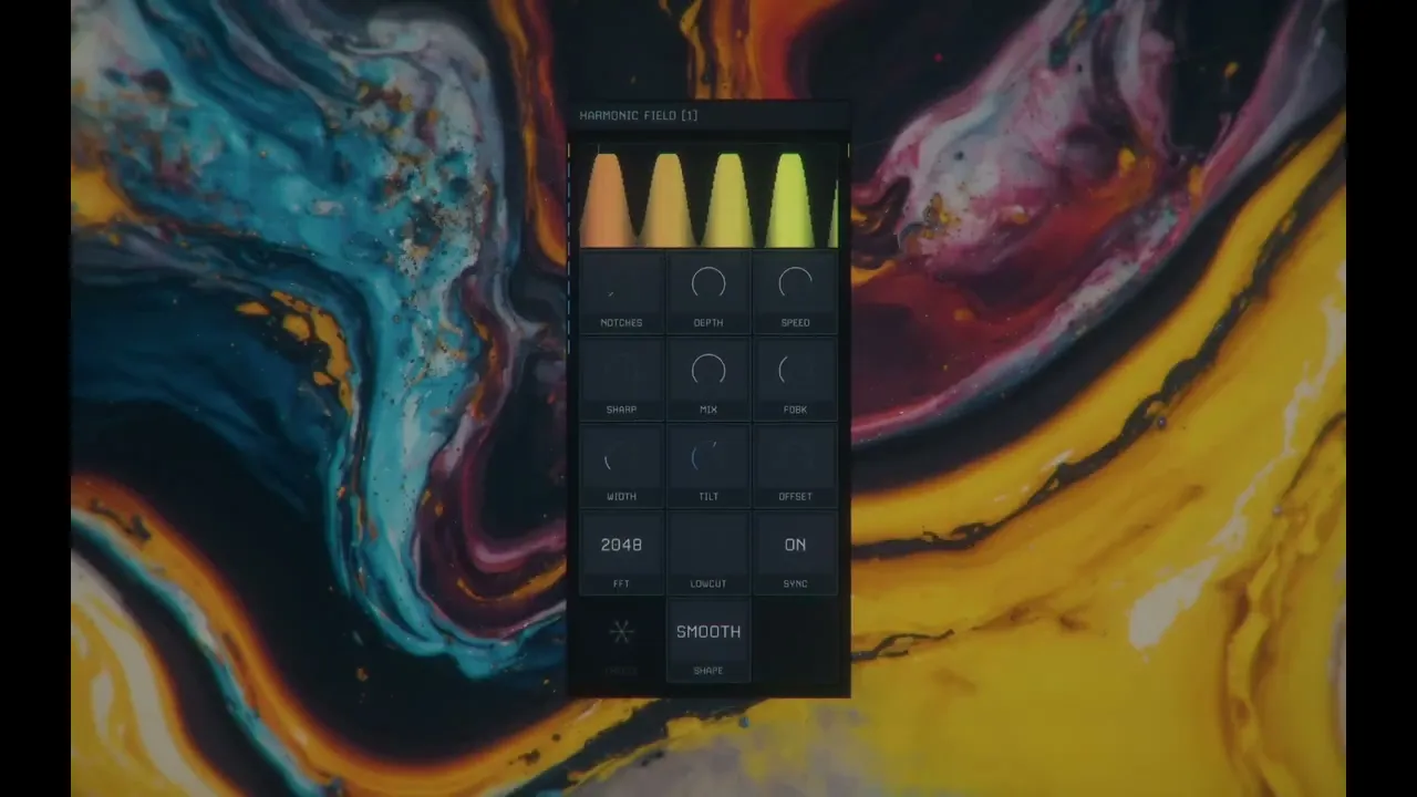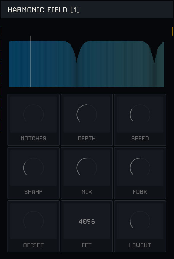 HARMONIC FIELD: FFT spectral comb — 2-122 sweeping notches, frequency-domain phaser.