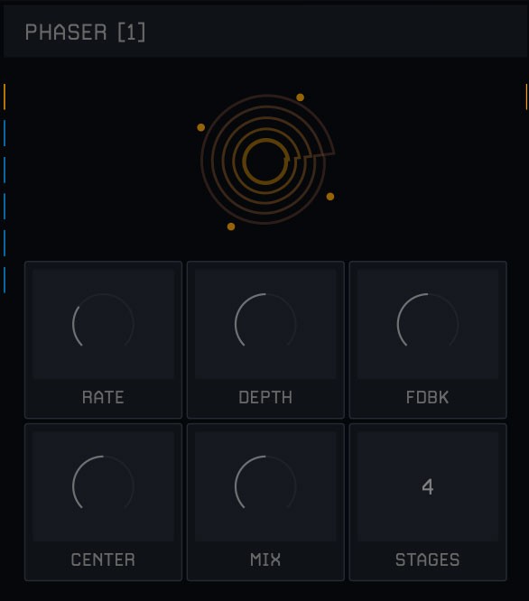 PHASER: All-pass phaser — 2-12 stages, classic swoosh.