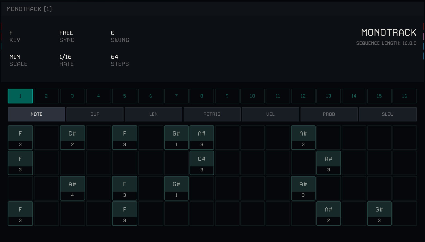 MONOTRACK: Monophonic melodies | MIDI, Gate | Single-voice pitch sequences, step by step.