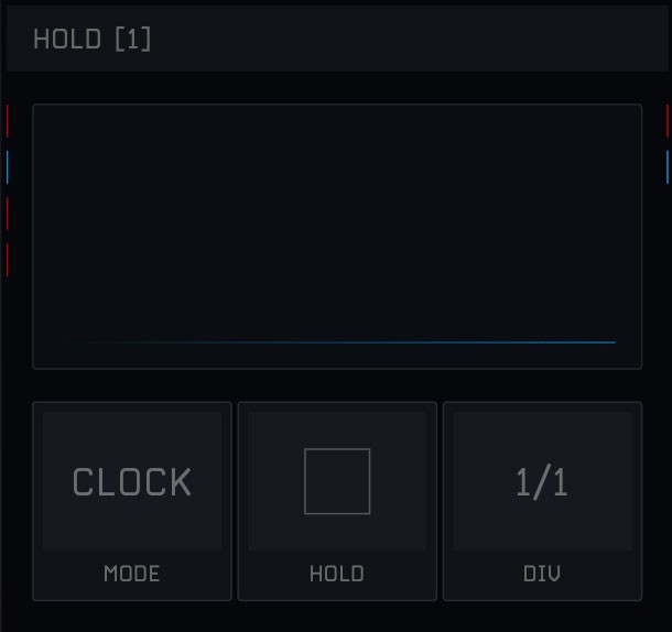 HOLD: Sample & hold — freezes CV on trigger, with free/clocked modes.