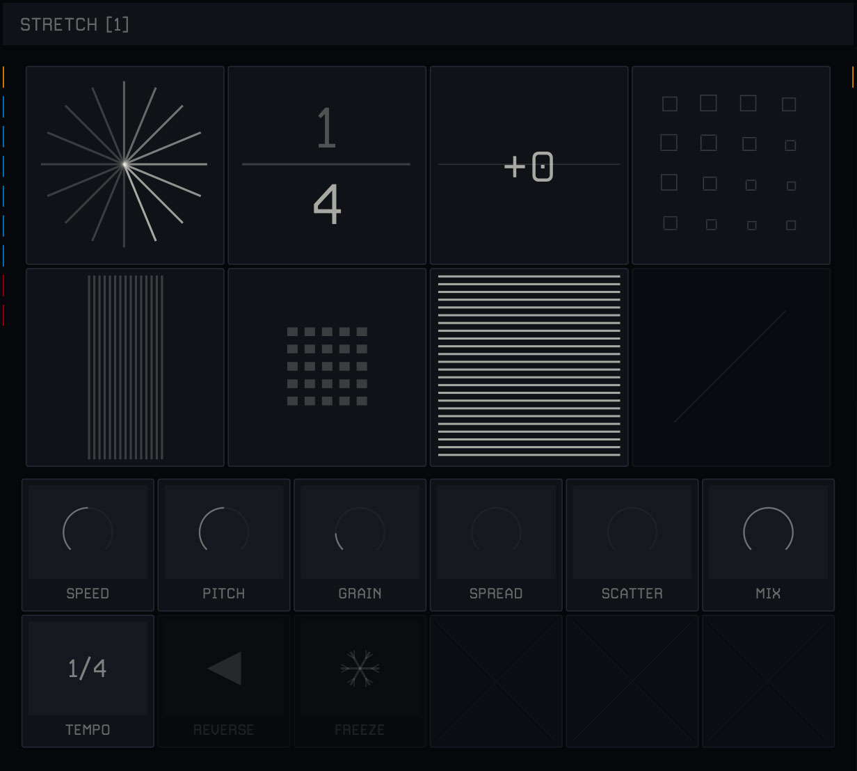 STRETCH: Granular time-stretch — independent speed and pitch, freeze.