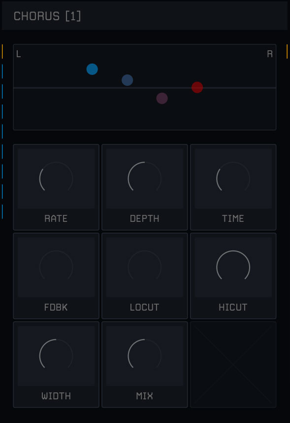 CHORUS: 4-voice stereo chorus — classic widening with tone shaping.
