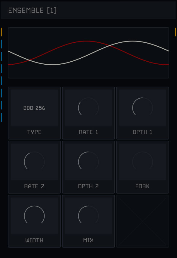ENSEMBLE: BBD chorus — 4 chip types, dual LFOs, vintage analog character.
