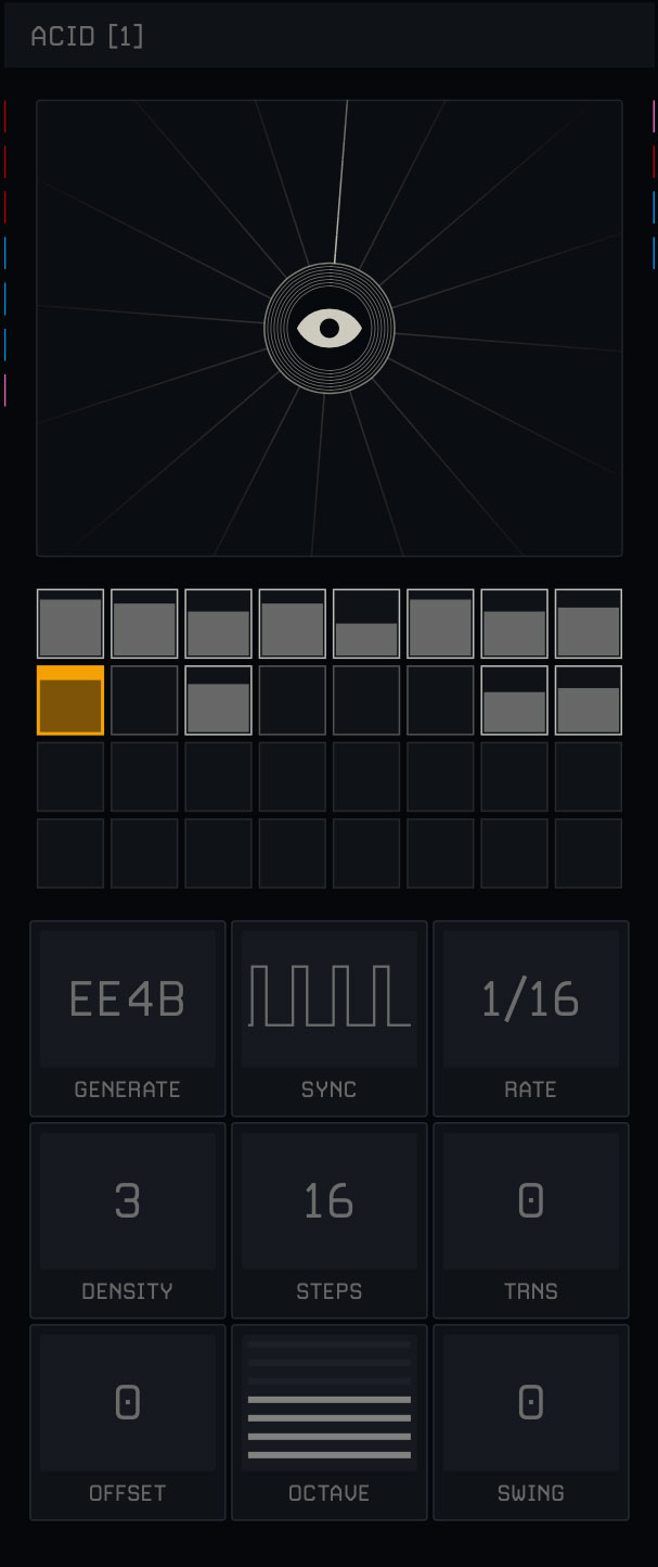 PLENUM: Polyphonic chords | MIDI, Gate | 32-step chord sequences with 20 mood palettes, arp, strum.