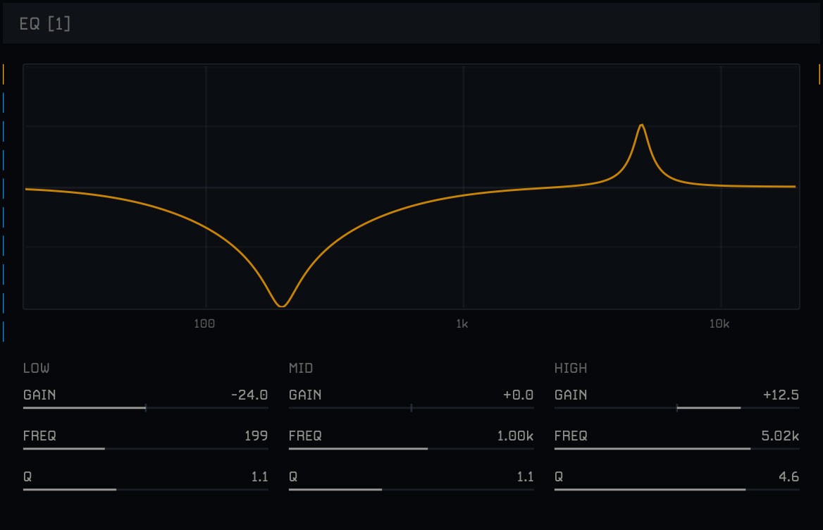 EQ: 3-band parametric with real-time FFT spectrum analyzer.