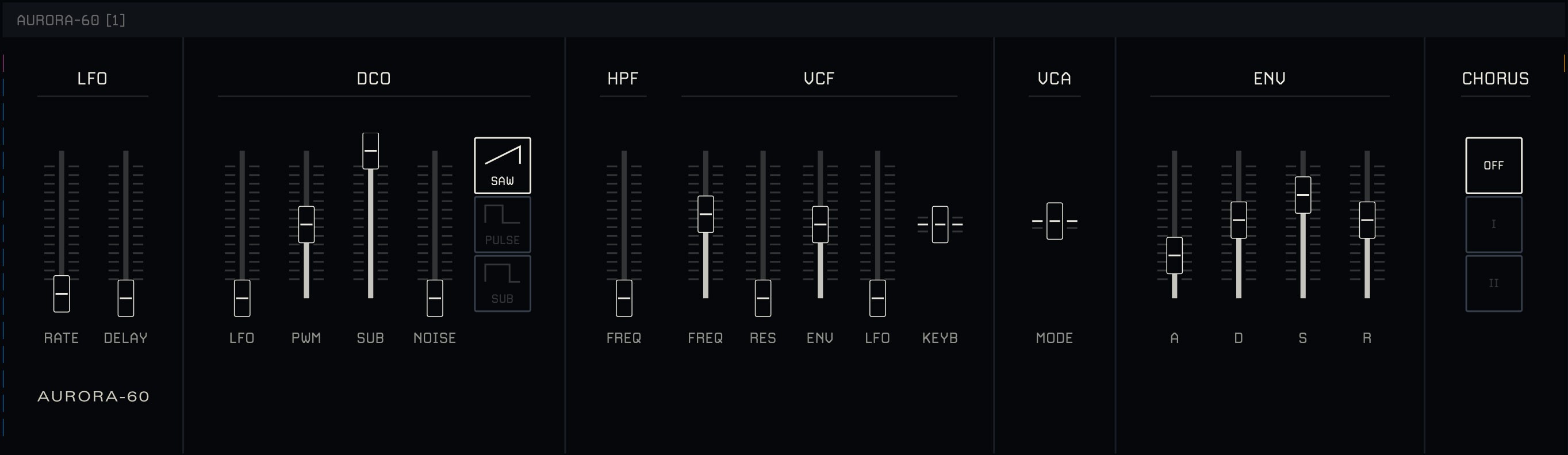 AURORA-60: Roland Juno-60. Warm, lush pads & chorus. The friendly one.