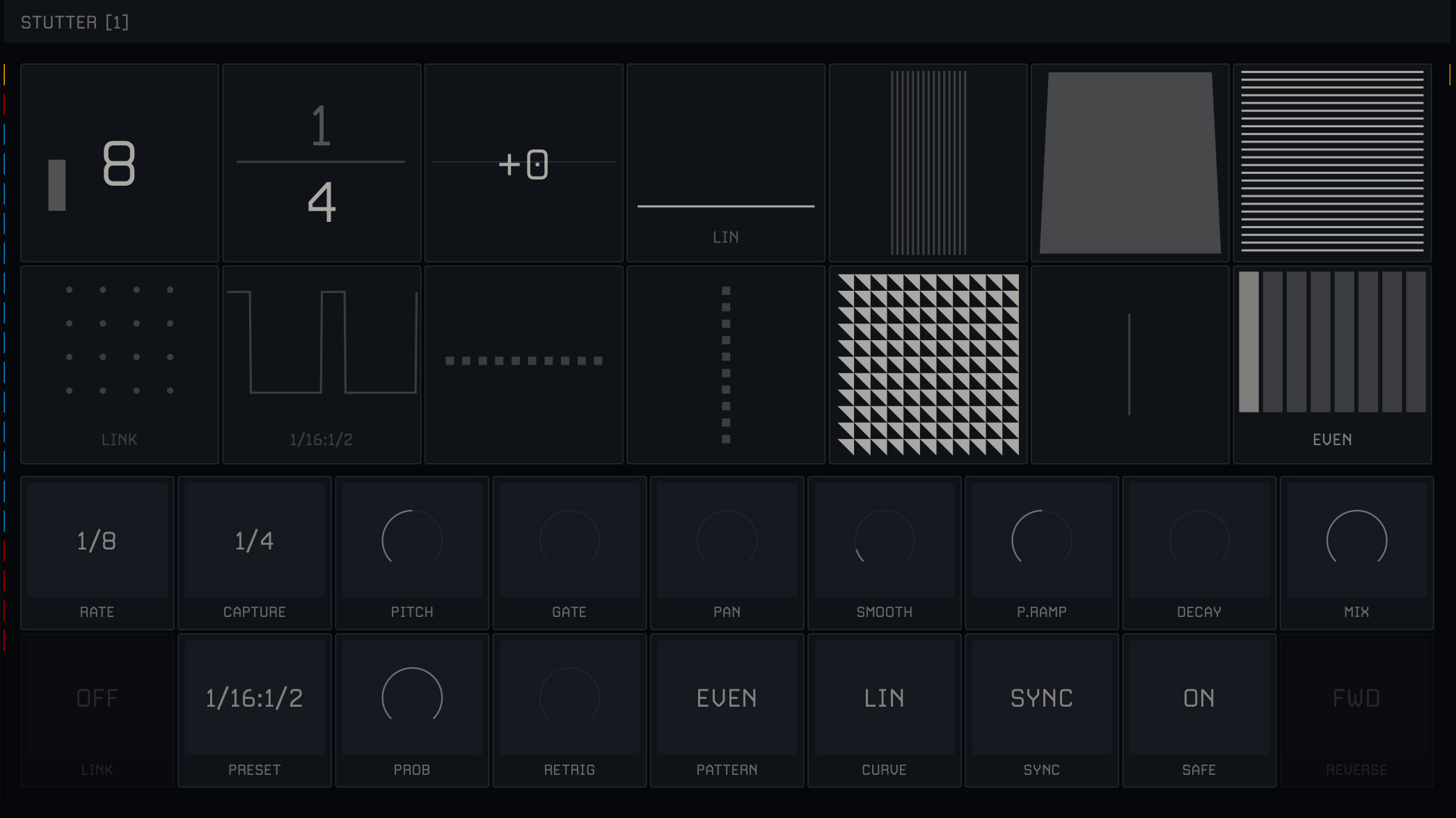 STUTTER: Buffer repeat/glitch — 19 presets, probability, tape stop, the glitch tool.