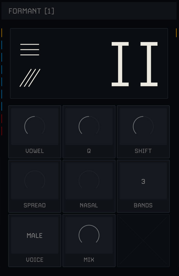 FORMANT: Vowel filter — 5 voice models, A-E-I-O-U morphing, talking synths.