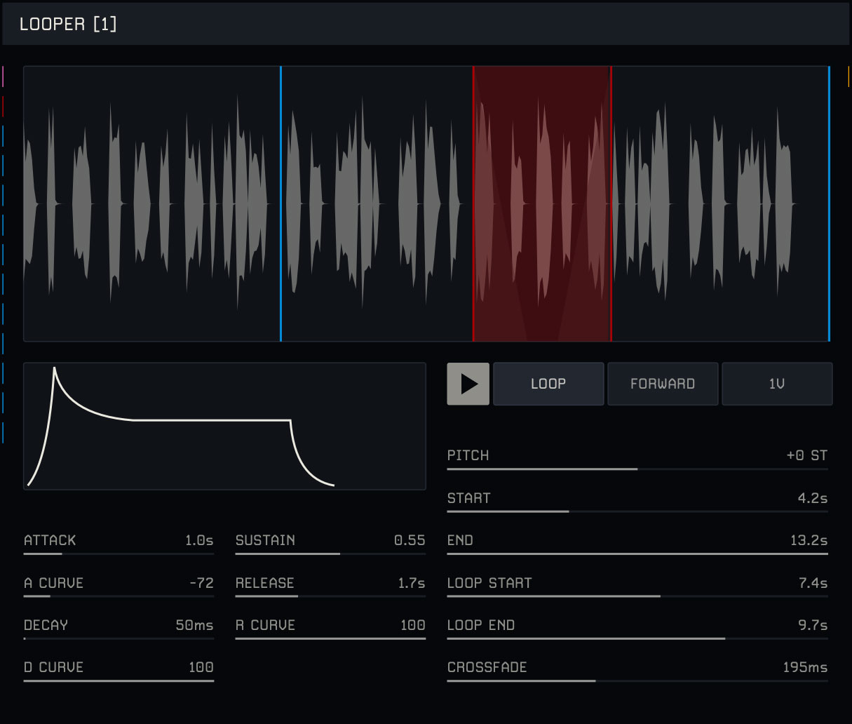 LOOPER: 4-voice polyphonic sample player with loop points, crossfade, and pitch.